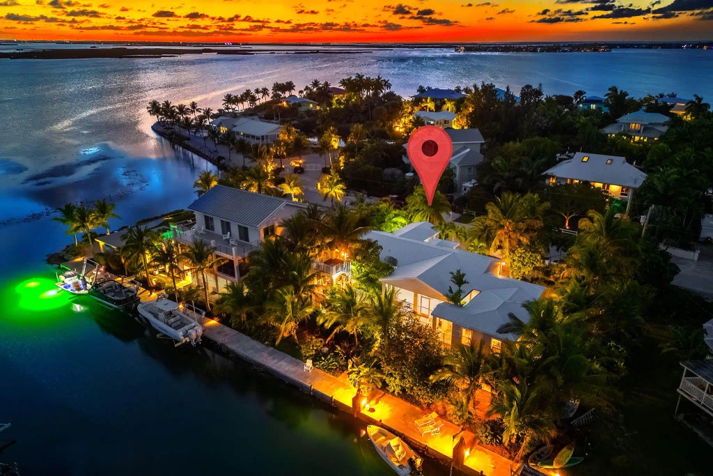 Waterfront Retreat in Sugarloaf Key - A Boater's Dream!Located on prestigious Sugarloaf Key, only 20 minutes from Key West, this meticulously maintained 4-bedroom, 3-bathroom home offers seamless indoor-outdoor living with breathtaking water views and boating access to world-class fishing and diving. The 12,500 sqft lot is situated in a prime location only one in from open water on a crystal-clear, wide canal with a 100-foot concrete seawall, davits, and ample dockage. Surrounded by lush tropical landscaping, it feels like a private sanctuary, where swaying palms and rare bird sightings create a peaceful retreat. The open-concept living space features a well-appointed kitchen with stainless steel appliances, an island, and generous storage. A split-bedroom floor plan ensures privacy, with two primary suites on opposite ends of the home. The 2 guest rooms are separate with a shared bathroom which makes this home ideal for ultimate privacy for guests. Additional highlights include a home theater room and an expansive covered entertaining area beneath the home, complete with a custom-built bar and a cozy fire pit. Outdoor spaces include spacious decks, a screened in covered porch, a private rooftop terrace for sunset views and stargazing, and a one-of-a-kind outdoor shower, crafted from an original Key West ticket booth. A separate enclosed room on the ground level offers flexibility as a massage space or additional storage. A large garage, covered parking, and a circular driveway provide ample space for vehicles and guests. With plenty of room to add a pool, this home offers endless possibilities to enhance your outdoor living experience. Whether you're hosting a gathering or unwinding after a day on the water, this exceptional property captures the best of the Florida Keys lifestyle. Don't miss this rare opportunity to own a prime waterfront home in Sugarloaf Key! Check out the 3D floorplan to view the sprawling layout and video here https://tinyurl.com/4c46fzsm