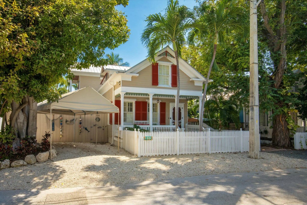 Not a duplex! This beautiful property consists of two single family homes surrounded by tropical foliage. This one-of-a-kind compound blends island charm and character. Offering a 3 bedroom 4-bath Conch house with a large separate 1 bedroom 1 bath home with a full kitchen. The 3 bedrooms, 4 bath home has wall-to-wall Dade County pine with an open floor plan and a chef's kitchen. The open concept living space flows effortlessly into a sleek kitchen with quartz countertops, stainless steel appliances, and offers a tranquil escape just steps from the pool. The second, 1 bedroom, 1-bath home provides secluded privacy for visitors or a lucrative rental opportunity. Surrounded by lush, mature landscaping and brick pathways, the private courtyard creates a peaceful hideaway, perfect dip in the heated oversized pool. Steps from Key West's vibrant restaurants, galleries, and historic landmark.