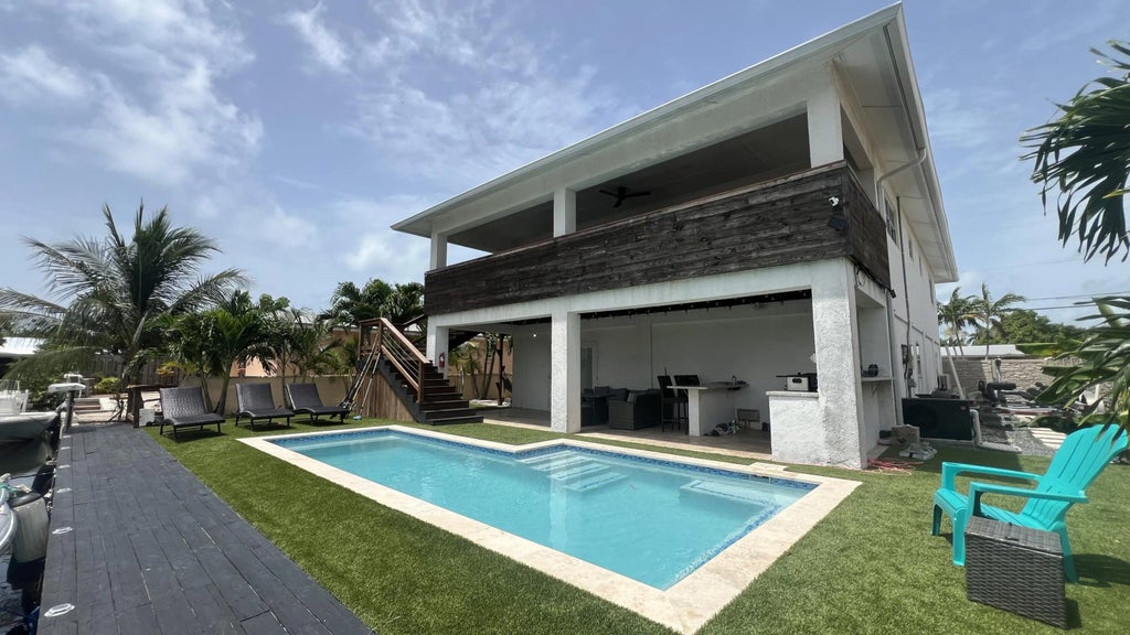 WATERFRONT!! EXITS TO THE OCEAN. FULLY FURNISHED HOME, READY TO MOVE IN. ONE OF THE FEW CANALS LEADING TO OCEAN INSIDE KEY WEST.Completely remodeled Oceanfront 3 bedrooms, 2 bathrooms, 2 car garage, completely furnished dream home on the water with game room and a 50ft dock on a very private neighborhood. This home is move in ready. UPSTAIRS- This home has a brand new top of the line kitchen with wood cabinets and quartz tops, huge modern quartz island style counter on an open floor plan layout. Two beautiful new bathrooms with top of the line fixtures. New high-end water proof laminate floors upstairs and new modern tiles downstairs. Brand new 5 inch modern baseboards throughout the property. It comes with all new black stainless steel appliances. New central air conditioning system. Impact windows and doors. New sofa, dining table, beds, Tv's, Dresser, office desk, counter stools, cooking pots and pans, dishes, cups, silverware, towels etc., this home has it all. Master room with walking closet. Closet barn doors and much more. DOWNSTAIRS- the dream game room. It comes equipped with many features. Features a bar quartz countertop area as well with new black stainless steel extra refrigerator and chest freezer, Futon style sofa with TV, basketball hoops, foosball, pin pong table, pac-man machine with 16 games, bicycles and connect four games. GARAGE AREA- This is a full two car garage with commercial grade storage and metal work station counters, half a bathroom downstairs with sink. OUTDOORS- Fully fenced home out front and sides making it a secure fort. Space on the side to park boat trailer or RV. Outdoors kitchen with granite countertops, sink and barbecue. Complete dream home. Set up for immediate move in.