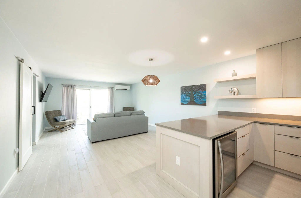 New Price!! Key West By The Sea offers the quintessential beach condominium lifestyle. This gated community offers a diverse array of amenities, including swimming pools, shuffleboard, tennis courts, and meticulously landscaped tropical grounds. This move-in-ready TOP FLOOR unit has been meticulously upgraded and renovated, featuring: A contemporary kitchen with ample cabinetry, Stainless steel appliances & In unit Laundry, Beverage chiller, & Quartz countertops. Revel in tranquil pool vistas from your private balcony, offering treetop views. The living area leads to sliding glass doors that open to the balcony.The bedroom is generously proportioned with custom built-ins for additional storage and a walk-in closet. The en suite bathroom is elegant with custom tiling, a walk-in glass shower, and an upgraded vanity. Impact-resistant windows.Tankless water heater. Ductless air conditioning. This property is ideally situated across from Smathers Beach and in close proximity to Old Town Key West. Just across from Smathers Beach-KWBTS is situated on eight acres of lush, landscaped grounds, centrally located, 206 units and is professionally managed. Condo dues include bldg insurances, cable, wifi, qrty pest control, & common area maintenance.