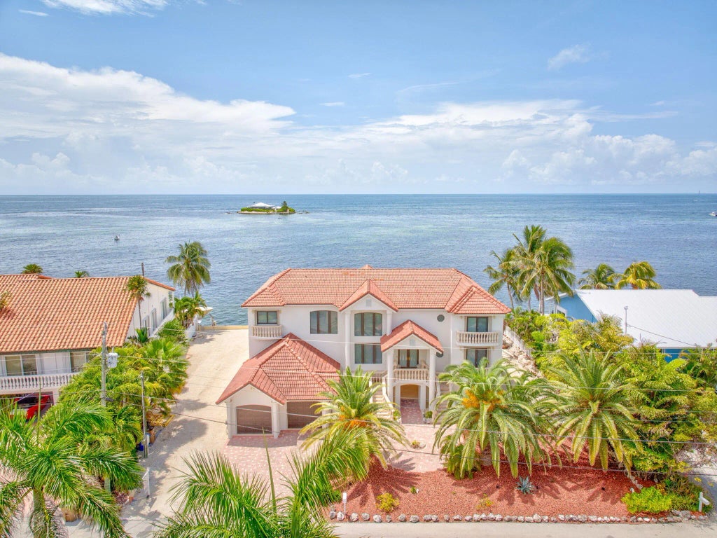 Rising majestically above the sparkling Atlantic, this Concrete Fortress on Marathon's prestigious Ocean East peninsula redefines luxury coastal living. Located within an exclusive gated community of only 16 homes, the residence offers unrivaled privacy and proximity to one of the Florida Keys' most beloved destinations--Sombrero Beach.Inside, 5,340 sq. ft. under air unfolds into soaring living spaces, anchored by an open-concept great room where walls of glass showcase endless sunrise-to-sunset ocean views. The formal dining room is a showstopper with its panoramic backdrop, while the newly renovated kitchen boasts sleek quartz counters and modern finishes.The home's 4 ensuite bedrooms are true sanctuaries, each massive in scale, with two spectacular primary suites offering private sitting rooms and wraparound water vistas. An elevator connects all levels, from the impressive 4-car garage to the bedroom retreats.Outdoors, 4,218 sq. ft. of covered patios and porches invite year-round entertaining. The brand-new oceanfront pool and spa sparkle under the Keys sun, framed by direct ocean access, a private 131' seawall, and a boat lift ready for adventures on the water.Set on a 14,730 sq. ft. lot, built with enduring concrete construction, and positioned in one of Marathon's most exclusive enclaves, this estate is not just a residence--it's a statement of strength, elegance, and timeless oceanfront living. Home is still undergoing renovations including pool decking, artificial turf and landscaping. Please keep checking back for updated photos.