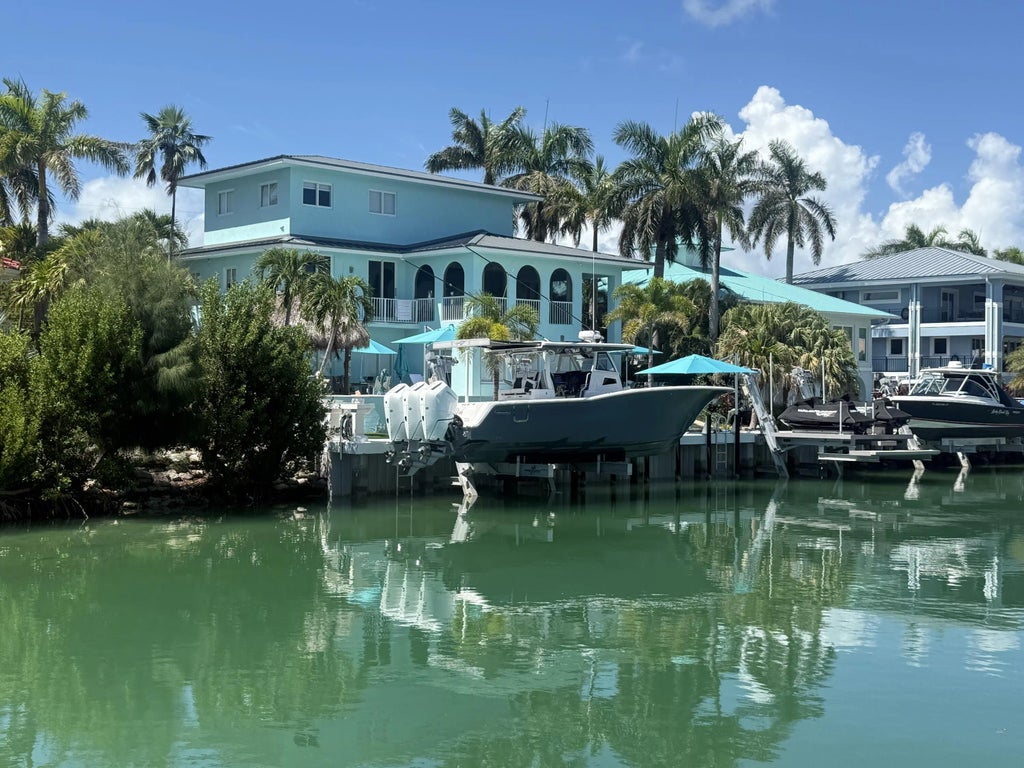 28 day minimum rental. Welcome to paradise! This luxury custom home has it all! Only 1100 feet to the ocean inlet, no fixed bridges, 100' wide crystal clear canal, ocean views from the third-story loft, two 25k boat lifts available for up to 40' boats, double jet ski lift, paddle boards, fishing rods, and golf carts are ready for guests enjoyment. Home fully furnished and equipped, ready for your vacation of a lifetime! New hurricane impact windows throughout, custom wood floors, new appliances, new HVAC, spacious screened Lanai, tall 24' ceilings with loft, heated and chilled pool with spa, outdoor tiki with full outdoor kitchen, and much more. Kid-friendly home with six bunk beds. Invite the family; this house easily accommodates 16 people or more. Over 4700+ total SF. Owner used and well cared for home and first time on the seasonal rental market. Enjoy your winter on one of the most popular and desirable islands in all of the keys. A short golf cart ride to 5 Star restaurants and bars. Fully furnished and ready move in, 28 day minimum month rental. An additional lot is available for extra parking. Rates vary by month. EV charger on site. Available months are October 2025, November 2025, February 2026, May 2026