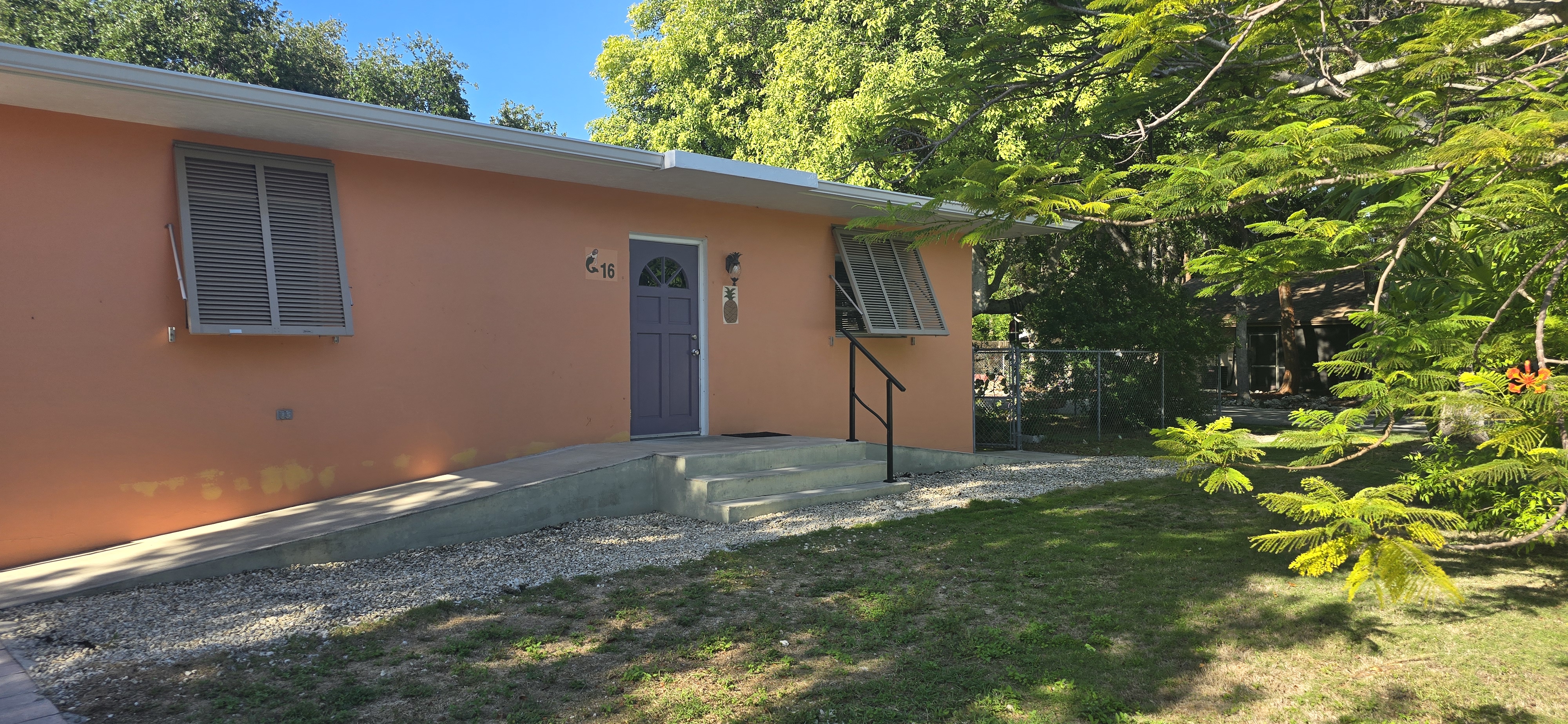 Enjoy the the easy commute to the mainland, and the peace of livin' in the Keys! This charming 2-bedroom, 1-bath home sits on a huge 19,620 sq. ft. fenced lot, so your fur babies are welcome! With 900 sq. ft. of comfortable living space, a detached concrete garage, screened in patio, and a backyard oasis complete with a shady tiki hut, this property invites you to relax, entertain, and soak in the Keys lifestyle. Designed for convenience, the home features handicap accessibility with front and back entry ramps and an accessible kitchen and bath. Annual lease.